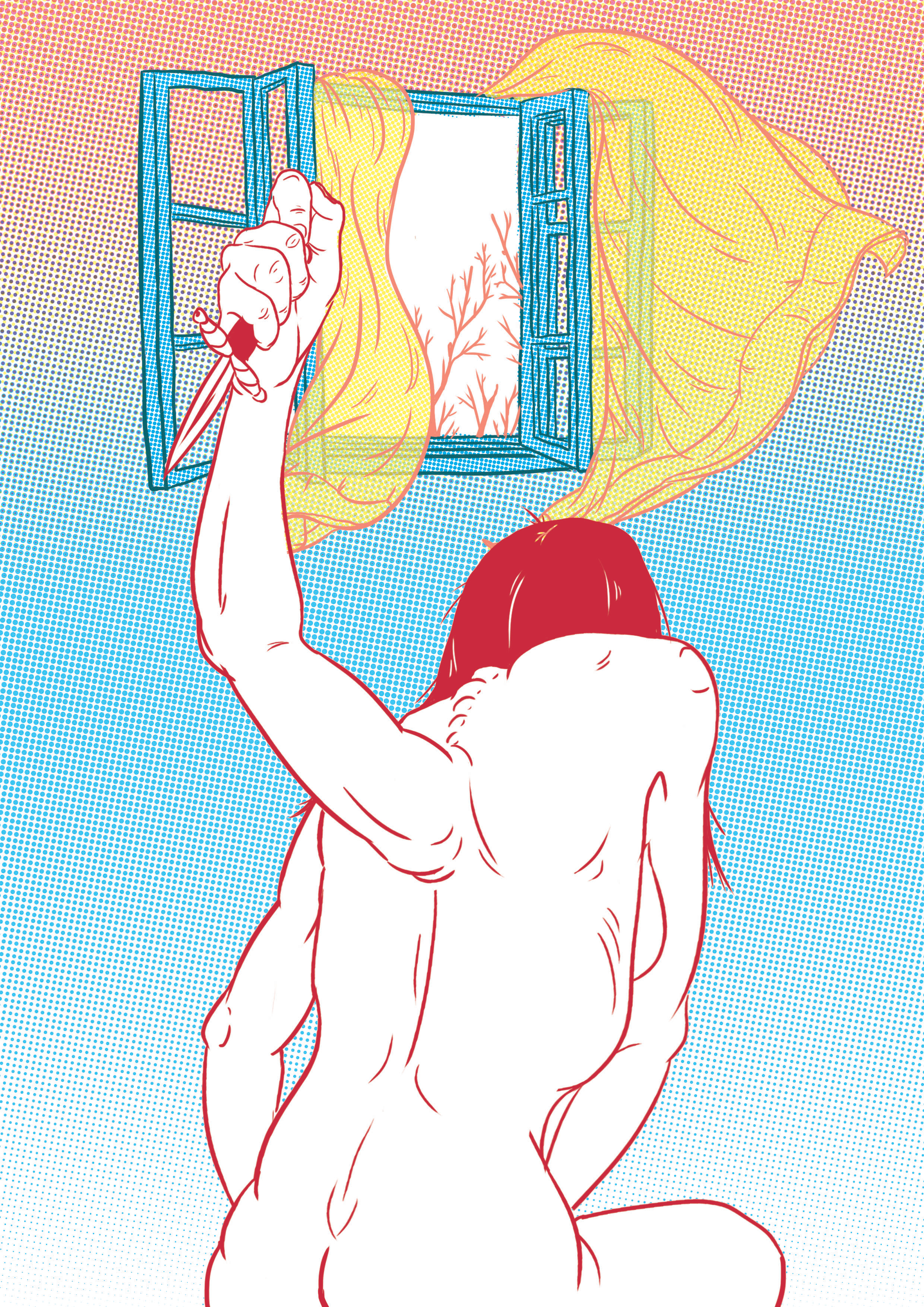A re-draw of an older piece I did for a zine I made 4 years ago just after graduating. I liked the imagery of a knife coming from the back but wanted to how I have changed since then.
